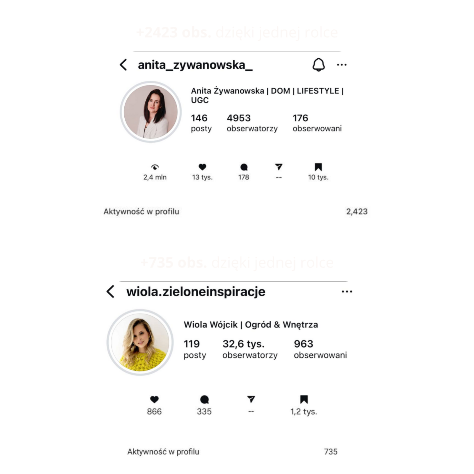 Publikuję tylko 5-6 rolek miesięcznie, a do mojej społeczności co miesiąc dołącza min. 4000+ nowych osób (bez reklam).